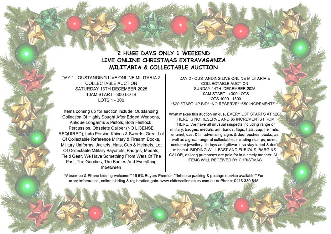 LIVE ONLINE CHRISTMAS EXTRAVAGANZA MILITARIA & COLLECTABLE AUCTION